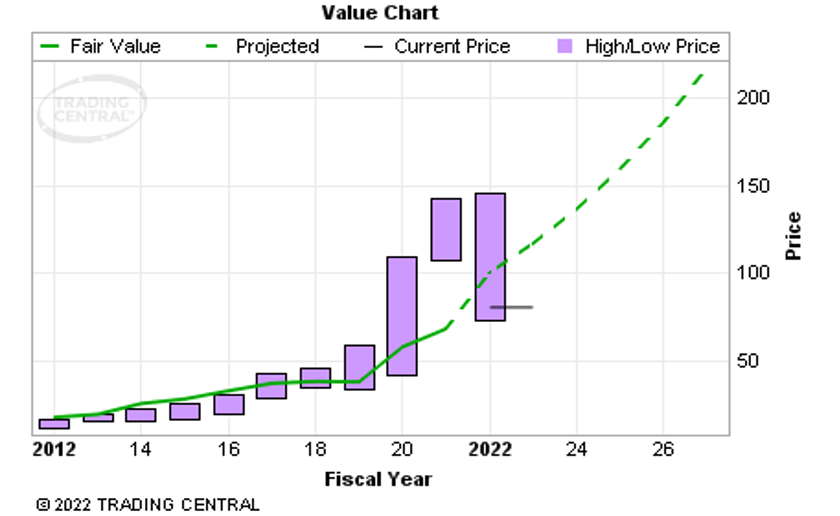 Due to the broader sell off and shift out of technology/growth stocks, over the past year semiconductor stocks have collectively posted negative returns, with TSMC down almost -35%. However, despite the weak performance and negative investor sentiment surrounding TSMC as well as many other semiconductor stocks, the current valuation has become even more attractive. TSMC’s American depository currently is trading on the NYSE: TSM at $80.90 per share (as of close on 02.09.22) with a PE ratio of 15.60, below both the industry average and the average of the S&P 500 index, representing discounted price 23.9% below the conservative fair value estimation of $100.29 per share.